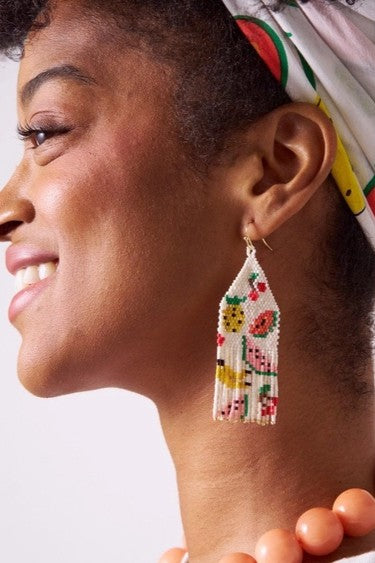 These fringe earrings provide fresh-picked fun. Add brightness to everyday looks with their colorful fruit-inspired beadwork. The earrings have lig...