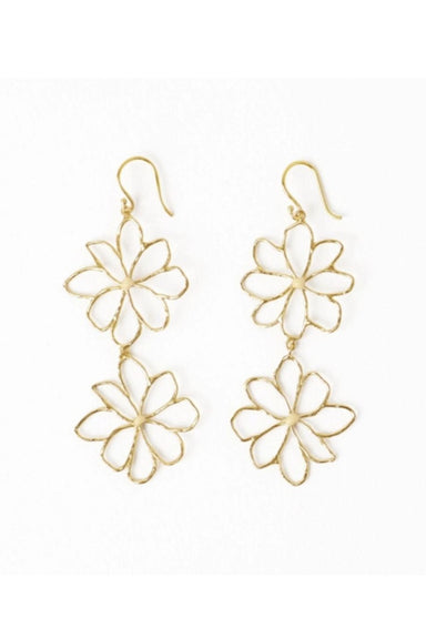 Made from polished brass in a double flower drop design, these earrings will add a delicate touch to your look. Perfect for everyday wear. Details:...