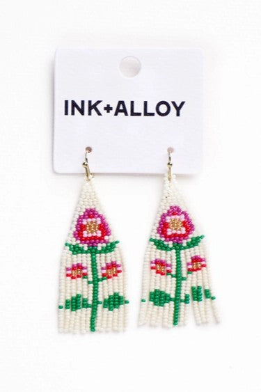 These earrings provide instant sunshine. Add brightness to everyday looks with their cheerful beaded flower dangles. The earrings are great for war...