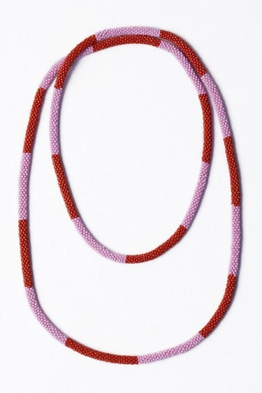 This necklace provides more color with less effort. Add depths to simple outfits with its lavender and rust-toned beadwork. The necklace is lightwe...