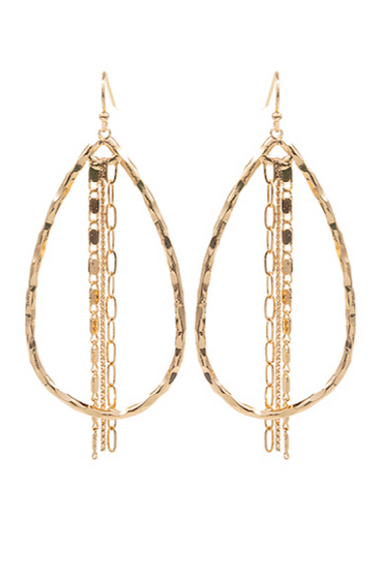 These hammered earrings in worn gold will give your look a vintage feel and add a classic touch. Details: Hammered link teardrop earrings Meta...