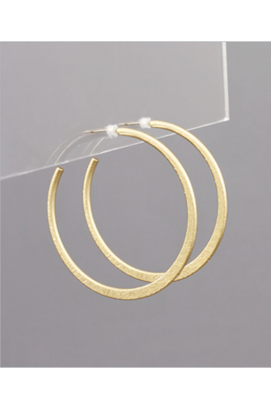 These gold hoops offer a more casual look with their scratched metal design. Great for everyday wear. Details: Scratched hoops Metal Post ...