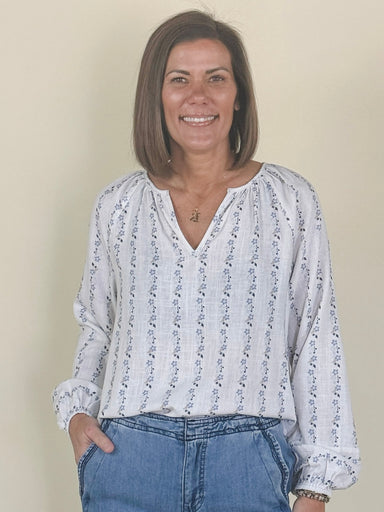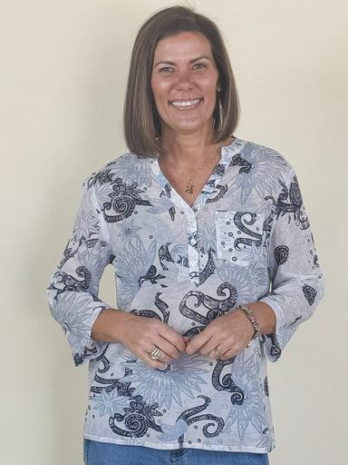 The Hannah Blouse is an easy style with its mandarin collar, adjustable sleeves, button details, and lightweight material. The floral and paisley p...