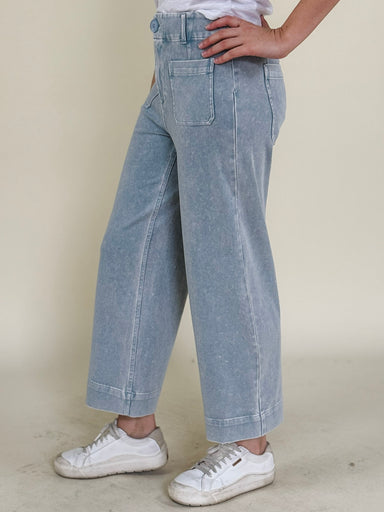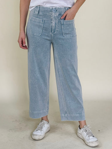 These denim pants in a light chambray wash are an easy way to elevate your spring looks. With a high-rise waist and cropped wide legs in a soft kni...