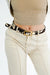 Made from genuine leather and calf hair, this belt combines texture and a bold pattern. The cow print adds a touch of ruggedness, while the rectangular buckle offers a clean, modern finish. It stands out as a statement piece, pairing well with casual or semi-casual outfits.