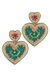 Embroidered Heart Drop Earrings - Teal