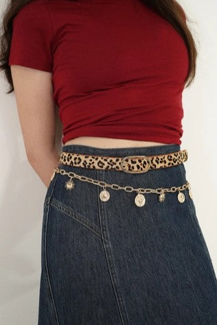 Be a part of the animal print accessory trend, but make it unique and fun with this spotted giraffe print belt made with genuine leather, embellish...
