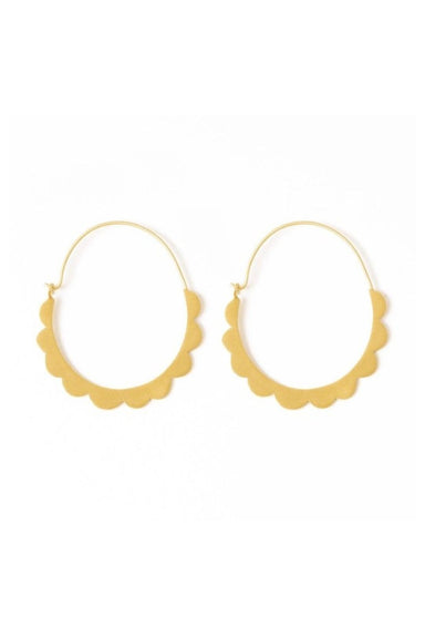 Elevate your style with the Stephanie Earrings in brass, a chic and sophisticated accessory. Featuring a scallop wrapped hoop design that adds a to...