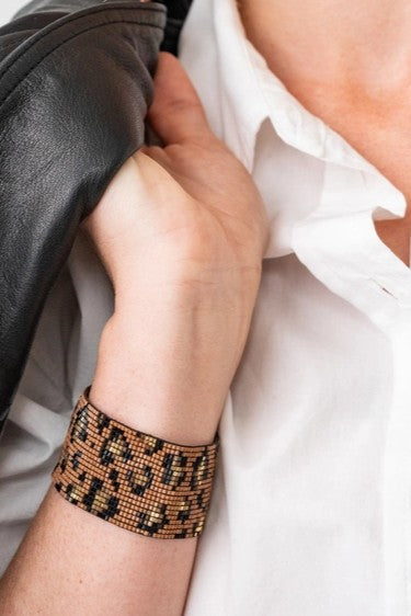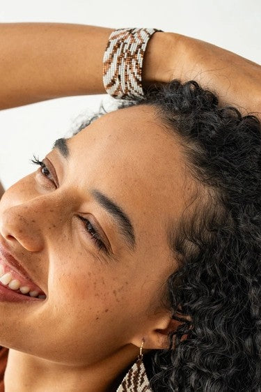Introducing the Brooklyn Bracelet—simple, striking, and ready to wear. Glass seed beads in bronze and ivory create a bold pattern resemblant of tig...