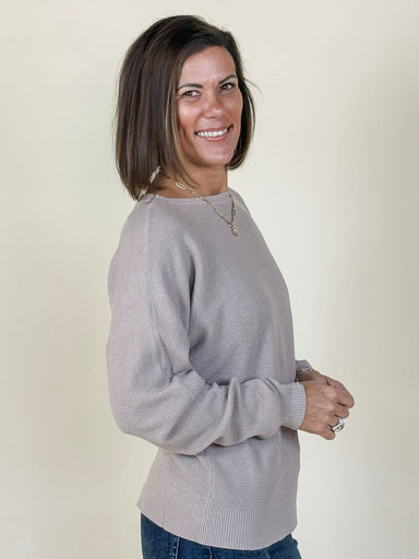 The Mia Sweater features a wide neckline, dolman sleeves, and a mini waffle knit for casual comfort. Easy to style with its solid-colored design, i...