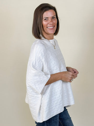 Ponchos are layering essentials for sweater weather. The Quinn Poncho Sweater will keep you warm and stylish with its mock neck and fine gauge cabl...