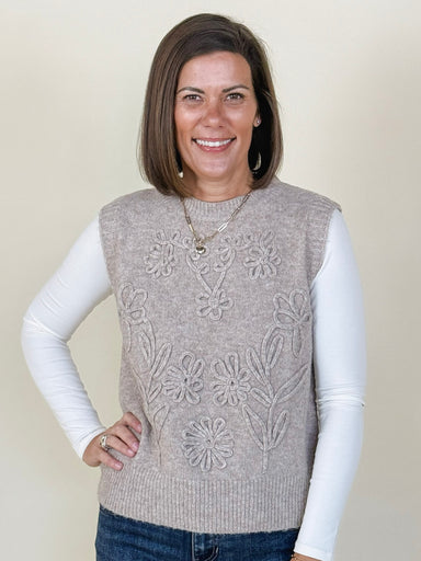 Not your average sweater vest, the Haley Vest features a crew neckline, solid-colored design, and floral embroidery on the front. Available in thre...