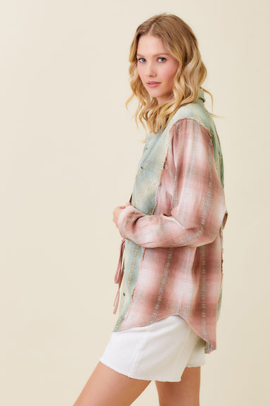 Dive into a world of dimensional style with the Katie Top. Designed in black and white, its eye-catching fringe texture in a windowpane plaid creat...