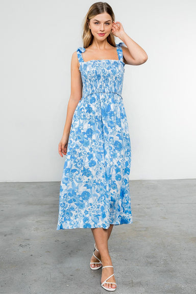 Vibrant and colorful, this dress is a standout style for any season. With delicate lattice trim details, puff sleeves, and mixed florals, it's a so...
