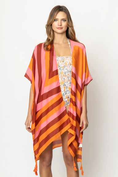 This large tote features a western-inspired Aztec design in pink, orange, and slate hues, accented with a pink pom tassel. Great for everyday use, ...