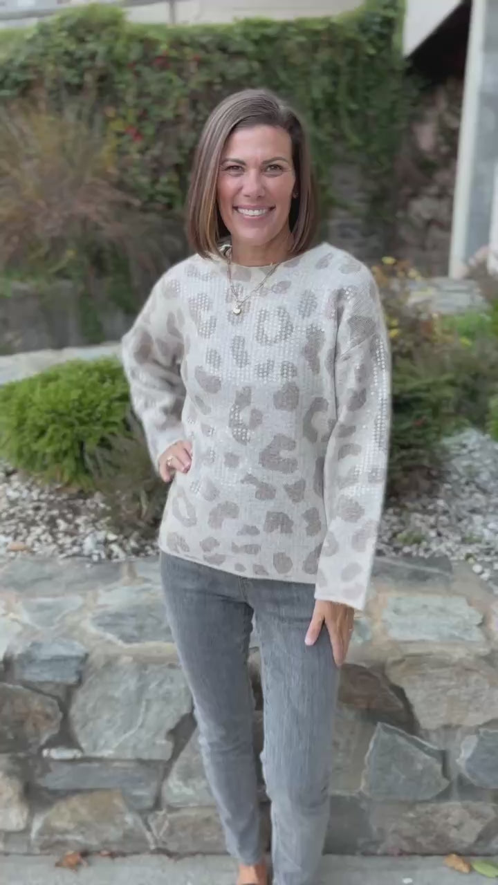 Make a bold statement with this sweater, featuring an eye-catching animal print adorned with shimmering sequins for a touch of holiday sparkle. Crafted from jacquard double-knit fabric, it offers both luxurious warmth and a fashion-forward edge, making it the ultimate standout style for cooler days.