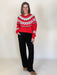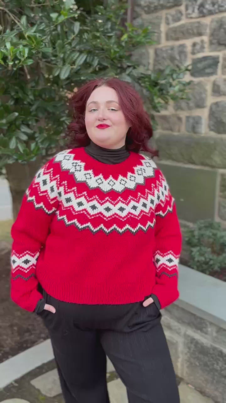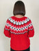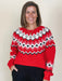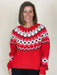 Add an extra dose of festivity to your ensemble with the Adornment Sweater. Featuring a contrasting fair isle pattern overtop a bright red, it's the epitome of festive styling.
