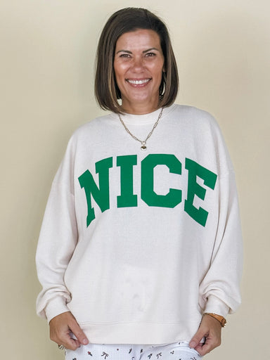 • "NICE" Cloudy Knit Long Sleeve Tee