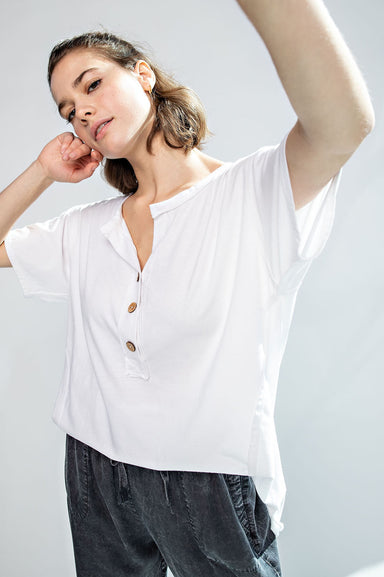 The not so basic basic. This elbow sleeve tee comes with a little wink at the cuff thanks to a notch detail that gives everyday styling a playful e...