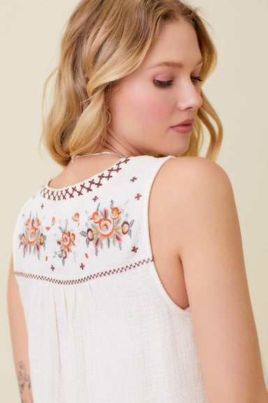 This sleeveless A-line silhouette is finished with soft shirring at the neckline that creates a graceful drape from every angle. The keyhole openin...