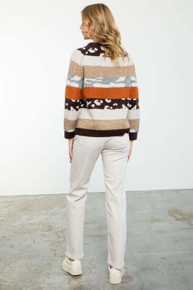 Unleash your wild side with the Laila Pullover. This piece pairs a solid-colored bodice with bold leopard print sleeves for a daring look. Contrast...