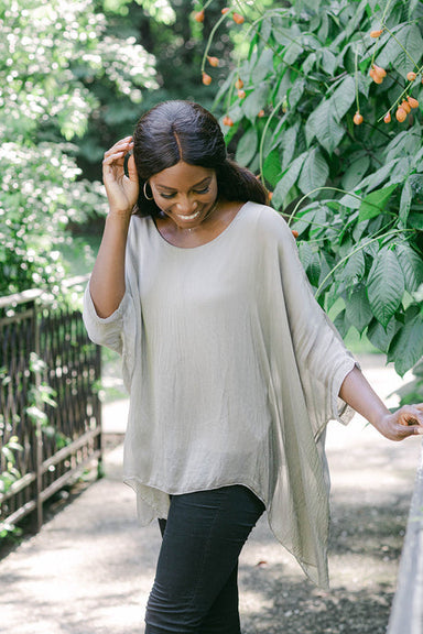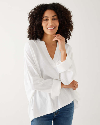 The not so basic basic. This elbow sleeve tee comes with a little wink at the cuff thanks to a notch detail that gives everyday styling a playful e...