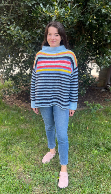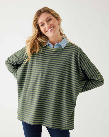 Classic stripes meet subtle romance. This sweater's wide neckline frames the shoulders with ease while the scalloped hem adds graceful movement and...