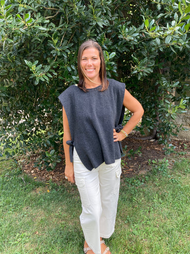 Sure to be your new favorite layering piece, this cardigan offers a sleeveless design and oversized fit. Its ribbed knit is super cozy and the tie ...