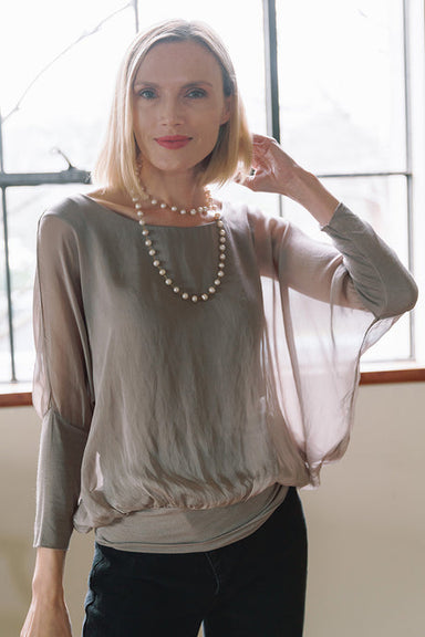 This sweater is the perfect style for transitioning from winter to spring. With a sweater-knit bodice and woven balloon sleeves featuring a texture...