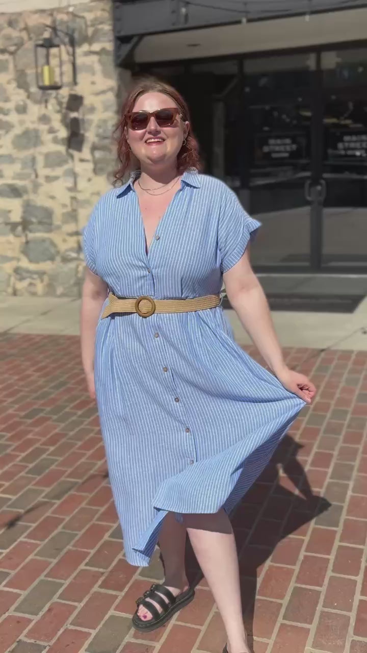 The perfect dress for spring and summer, the Beatriz is a maxi-length style but offers a breezy fit with its lightweight linen-blend and short sleeves. The belted design offers a flattering fit, and the dress has a classic blue-and-white striped print and side pockets. Pair with heels for a dressier look or sandals when you want to look casual.
