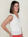 Defined by its open weave knit and modern Johnny collar, this sleeveless sweater delivers lightweight texture and dimension. An effortless piece designed to elevate everyday styling this season and the next.