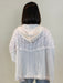 - Hooded v-neckline with ties
