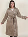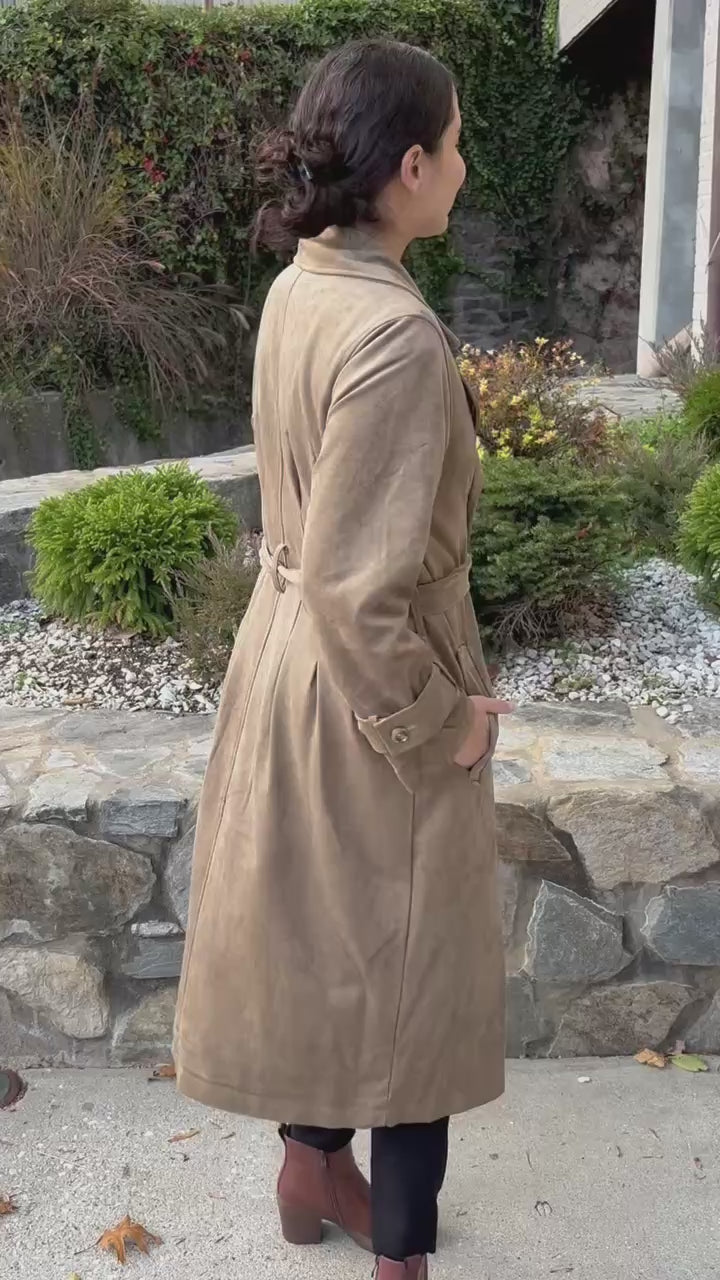 This midweight trench coat is all about quiet polish. Made from soft vegan suede with welt pockets and a tie waist, it layers beautifully while keeping your look clean, styled, and season-ready.