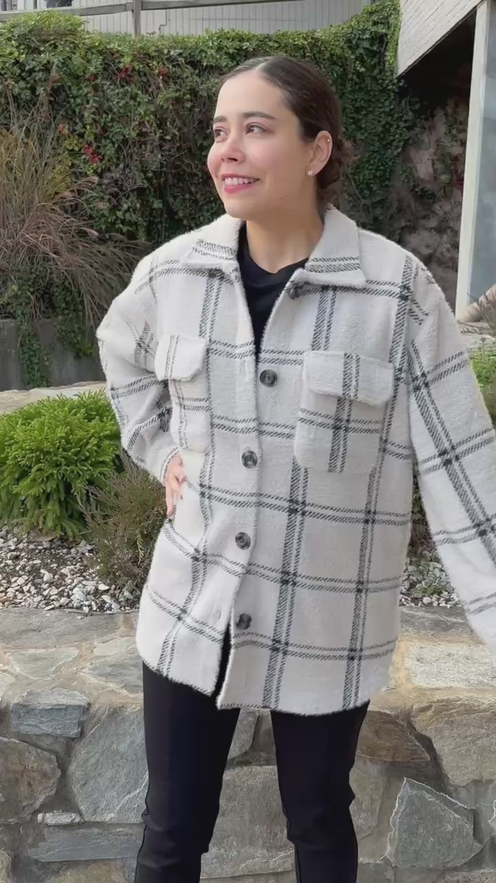 This oversized plaid jacket is made using a cozy midweight sweater knit fabric. The perfect longline layer, it features a button-up design that can be worn open or closed, along with functional front pockets.