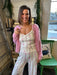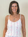 Made from silky jersey fabric, this cami feels soft, smooth, and light against the skin. The shirred front, lettuce hem, and floral print add a feminine touch, while adjustable straps and a built-in shelf bra make it lightly supportive yet comfortable for lounging or sleeping. Pair with the matching Dawn Boudoir Pants.