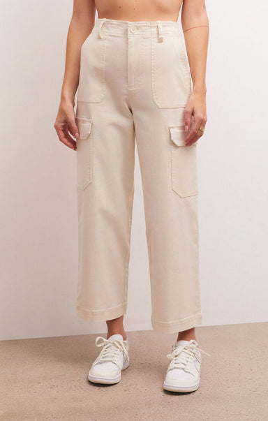 A modern wide leg with a crisp, cropped silhouette. This high-rise style creates a long, clean line through the waist and hip before opening into a...