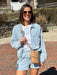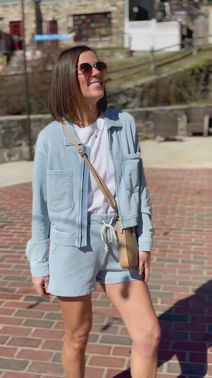 Cropped and comfortable, this denim layer is ready for everything. The vintage look of denim meets the softness of your favorite sweatshirt in this cropped jacket. Finished with roomy pockets and a zip front, it’s the kind of piece that works just as well with the matching pants as it does with a simple tee.