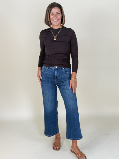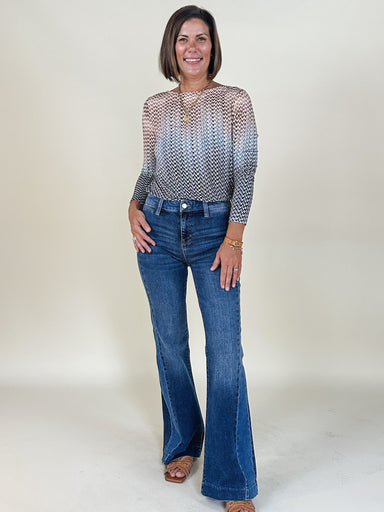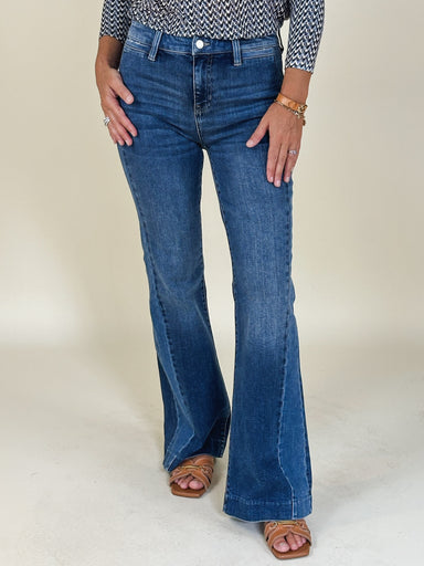 Enhance your wardrobe in this full length Hannah Flare Jean! A classic style that features a fitted waist and hips with a gradual flare from the kn...