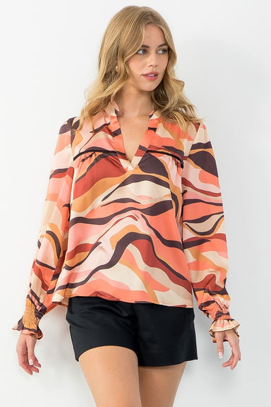 This shirt brings effortless chic to your fall wardrobe. Featuring a floral batik print, it adds a distinctive touch to any look. The twisted front...