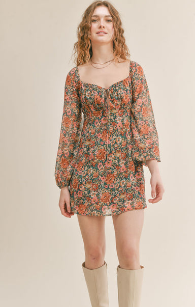 Vibrant and colorful, this dress is a standout style for any season. With delicate lattice trim details, puff sleeves, and mixed florals, it's a so...