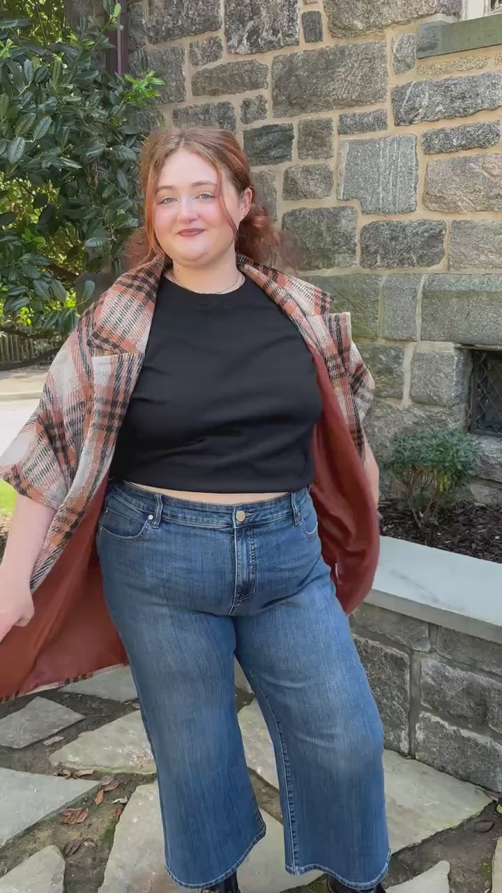 This coat features a refined notch lapel and an open front design for effortless layering. The half sleeves and knee-length cut create a modern silhouette, while the oversized fit provides both comfort and a chic, relaxed look. Showcasing a classic plaid pattern, this coat is perfect for elevating your fall wardrobe with timeless elegance.