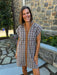 Fall adventures won't be complete without the Patty Dress. Featuring a ruffled v-neck, short sleeves, and a front contrast trim, this mini-length dress adds a flirty twist to classic plaid. Perfect for crisp days and cozy gatherings, it’s your go-to for effortless seasonal style.