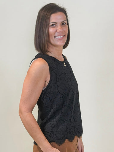 The Francesca Top features a refined round neckline and sleeveless design, enhancing elegance and comfort. Subtle metal button accents on the shoul...