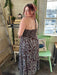 This dress offers a beautiful color combination atop a flowy, textured chiffon fabric. Its adjustable halter ties, smocked back, and maxi-length silhouette ensure the perfect, flattering fit.