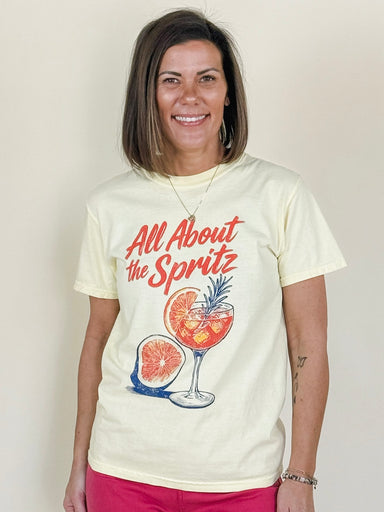 Graphic tees are a wardrobe essential, especially for warm-weather styling. This classic crewneck is bright, colorful, and all about the spritz. Pe...