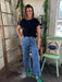 Add boho vibes to your wardrobe with the Cara Denim Pants. Made from stretch denim in a medium wash and featuring cropped flare legs, patch pockets, and a charming floral print, they're the perfect balance of comfort, practicality, and style. These jeans will effortlessly elevate your spring look.