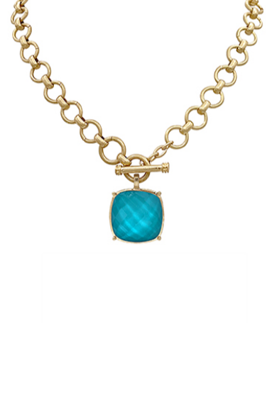 This necklace is an easy way to add pop of color to your ensemble. The 25mm cushion cut pendant offers a bold look that is sure to make a statement...