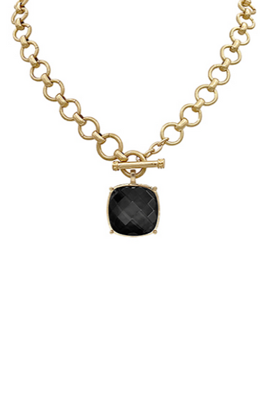Create a bold statement with this necklace featuring a 25mm cushion cut pendant in black. Details: Square stone pendant necklace Metal Faux...