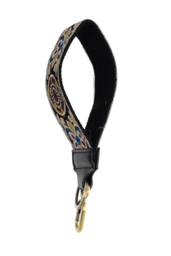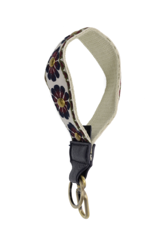 Never lose your keys again with this stylish wristlet keychain! Details: Embroidered wristlet Keyring/snap clasp Vegan leather Dimensions: ...