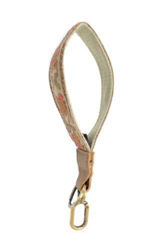 Never lose your keys again with this stylish wristlet keychain! Details: Embroidered florals wristlet Keyring/snap clasp Vegan leather Dime...